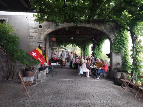 Dans un cadre magnifique, avec vue imprenable sur les vignobles du Lavaux, L’Union Belge de Lausanne et l’Union Belge du Valais se sont réunis pour fêter leur Fête nationale chez le vigneron Neyroud Fonjallaz ce vendredi 21 juillet. Ils étaient une cinquantaine. Ambiance bien belge et pour l’occasion avec la présence d’un « Frietkot », la « Baraka Frites » où les présents ont pu déguster la nourriture belge comme s’ils y étaient. Une soirée bien sympathique entre belges et leurs amis, comme les photos en témoignent.