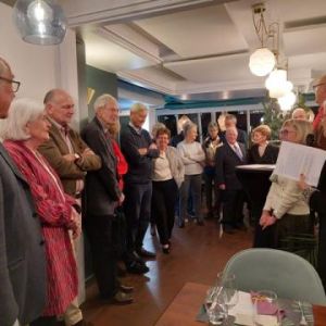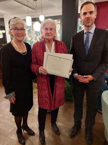 Le 14 novembre 2024 à l’hôtel de L’Union à Epalinges, la soirée pour honorer Anne Rosat fut charmante et se déroula dans une ambiance chaleureuse. La présentation par Anne de son parcours de vie nous a tous beaucoup touchés par sa sincérité, son enthousiasme et son engagement de toute une vie tant dans le domaine humanitaire qu’artistique. Michel Berode a rappelé l’historique du Prix Olga Tobler Kocken et expliqué pourquoi le Jury a porté son choix sur cette « Grande Dame ». Le consul de Belgique, Mattias Van Hecke, a analysé avec brio et en détails la maîtrise du travail de notre lauréate dans un discours éloquent. Nous avons été honorés par sa présence. Ce soir, nous avons aussi célébré la Fête du Roi en nous rappelant les mots du Roi Baudouin disant cette fête honore toute la famille royale mais aussi tous les volontaires qui se dévouent pour la Belgique. La Brabançonne a résonné dans la salle en l'honneur de notre patrie.