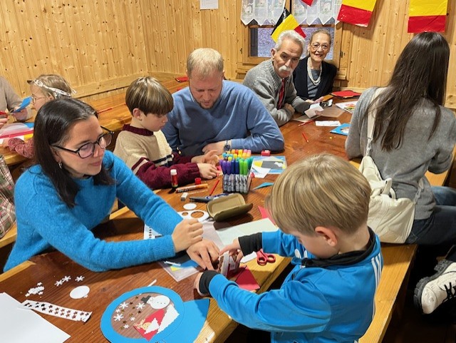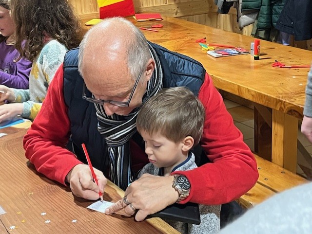 Attiré par les mélodies du galoubet provençal et du cor des Alpes sous une drache bien belge, quelle heureuse surprise attendait Saint-Nicolas le dimanche 7 décembre ! 23 enfants de quelques mois à 12 ans accompagnés de leur famille étaient rassemblés pour l'accueillir dans la chaleur bienfaisante de l'âtre du pittoresque Refuge du Chaugand à Epalinges. Les conteuses de l'Oreille qui Parle étaient également venues en renfort pour faire rêver les enfants. Bricolages variés, délicieuses gaufres belges faites maison, thé de Noël et vin chaud accompagnaient l'ambiance bien festive qui régnait! Tous nos remerciements à Chantal, Eric, Martine, Patricia, Sarah, Saint-Nicolas et Toni!