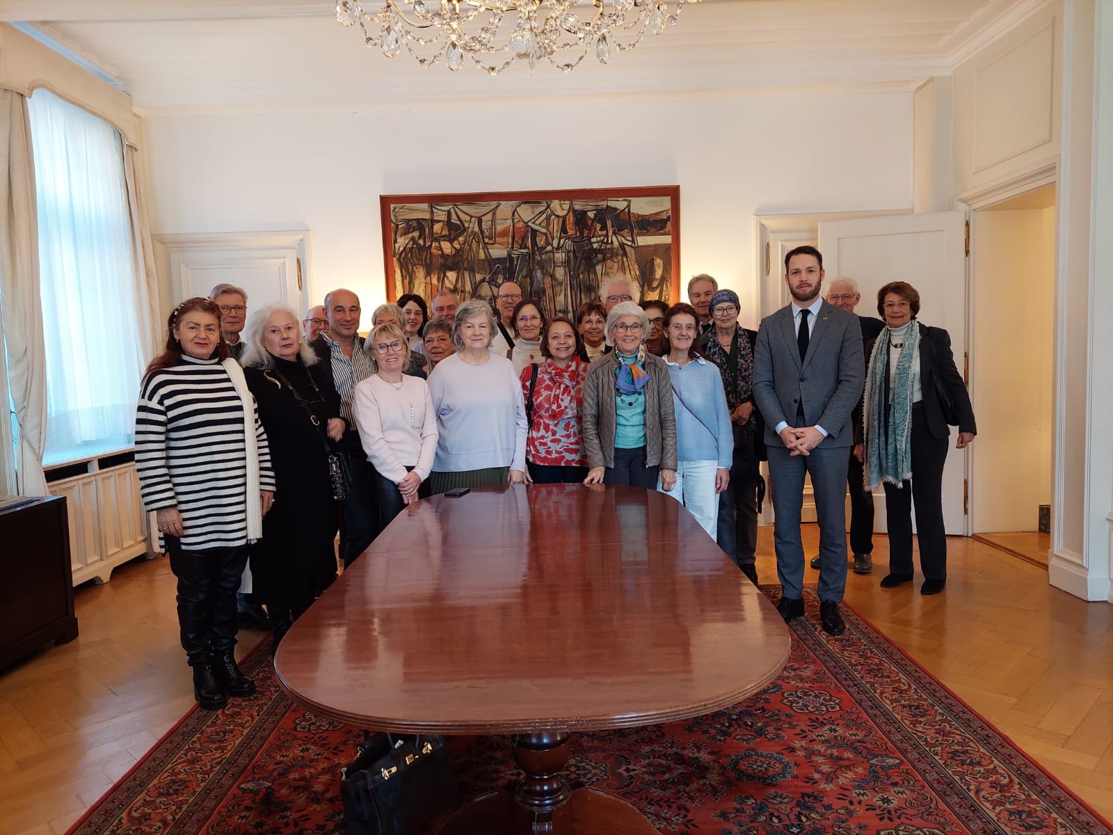 Une bonne vingtaine de membres de la SRUB-L et l’UBN ont eu le privilège de découvrir lors d’une exposition à la résidence de l’ambassade de Belgique à Berne, des œuvres du peintre avant-gardiste belge Floris JESPERS (1889-1965). La visite guidée était assurée par sa petite-fille, Anne-Lise Jespers, également peintre et résidant à Berne. C’était une occasion unique de découvrir le parcours de ce peintre anversois, principalement durant sa période africaine.
