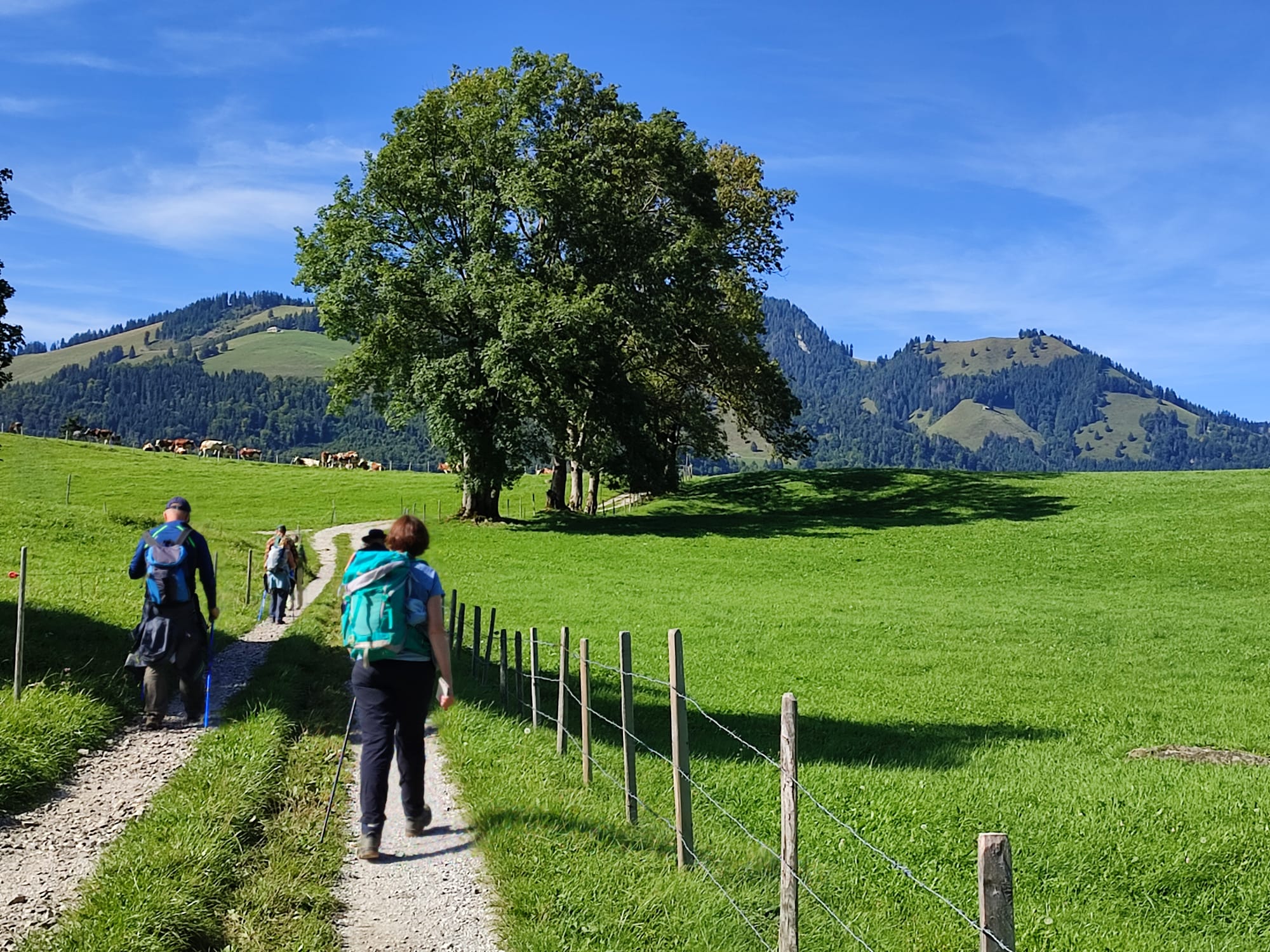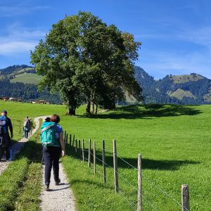 Balade de 12,5 km à 10 randonneurs dans la région de la Gruyère, autour du lac de Montsalvens.