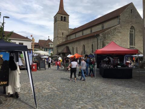 Ce samedi 6 mai, 21 membres sont partis à la découverte des joyaux et du chef d’œuvre architectural de la plus grande église romane ; récemment restaurée, de Suisse! L’Abbatiale de Payerne est un exemple de pureté cistercienne. Après avoir dégusté le gâteau de Payerne au Café du Marché, les moments phares de l’histoire de l’Abbatiale, en lien avec la famille royale de Bourgogne transjurane, nous ont été dévoilés en introduction dans la salle de cinéma aux murs recouverts de pierres de la région. Puis la talentueuse guide du patrimoine ; Lydie Zimmermann, nous parla de la reine Berthe et nous conduisit découvrir les précieux décors peints conduisant à la lumineuse et imposante nef ainsi qu’à la chapelle Saint-Michel de l’Abbatiale. Nous avons ensuite visité l’Eglise paroissiale la jouxtant, riche en vitraux puis avons découvert les salles et décors peints de l’Hôtel de Ville. Après un succulent repas au restaurant La Scala où nous avons goûté le gâteau du Vully, nous avons pu écouter les sonorités exceptionnelles de l’orgue du 18 ème siècle de facture Ahrend de l’Eglise paroissiale, mené de main de maître par Benoît Zimmermann ; organiste titulaire à Payerne depuis 20 années. Nous avons bénéficié également d’explications sur cet orgue unique. Pour finir, les membres ont soit pu visiter librement la ville historique, équipé de leur smartphone, soit le marché artisanal où il faisait bon flâner ou soit l’exposition « L’Abbatiale vue par les artistes ». Le soir, certains membres ont écouté un concert donné par Andreas Marti, organiste, dans l’Abbatiale et ont pu comparer la résonance oh combien différente de son orgue ! Le même soir, le jury du Prix du Musée Européen à Barcelone a décerné au musée Payernois une recommendation spéciale. Si vous n’avez pu nous joindre, prévoyez de visiter ce patrimoine historique à deux pas de chez nous ! Il en vaut vraiment la peine ! Merci Chantal et Yolande pour cette magnifique activité culturelle et culinaire!