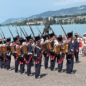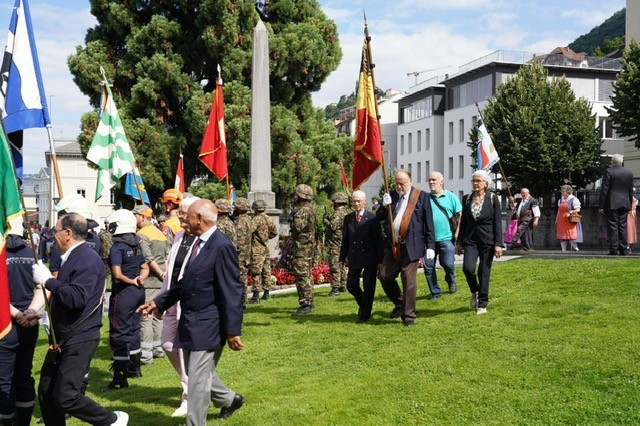 A Montreux, Anthony Huys, le fidèle et digne porte-drapeau, Yolande Dupret, la présidente, et deux membres de la SRUB-L, Léon Cerise et Xavier Steyer ont suivi la cérémonie et le discours du syndic M. Olivier Gfeller devant la Stèle du Soldat. Ensuite ils ont intégré le cortège jusqu’à la Place couverte du Marché au bord du Lac. De sociétés locales et milices vaudoises, des grenadiers et arquebusiers, des groupes folkloriques ont défilé devant une foule enthousiaste au son des fanfares. La manifestation festive s’est terminée par une collation helvétique et un vin d’honneur local au Marché couvert au bord du Lac sous un ciel radieux. Une manière sympathique de nouer des liens avec notre Canton hôte.