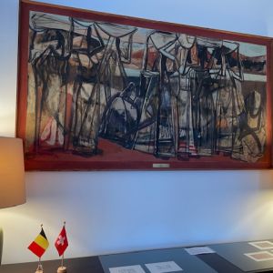 Une bonne vingtaine de membres de la SRUB-L et l’UBN ont eu le privilège de découvrir lors d’une exposition à la résidence de l’ambassade de Belgique à Berne, des œuvres du peintre avant-gardiste belge Floris JESPERS (1889-1965). La visite guidée était assurée par sa petite-fille, Anne-Lise Jespers, également peintre et résidant à Berne. C’était une occasion unique de découvrir le parcours de ce peintre anversois, principalement durant sa période africaine.