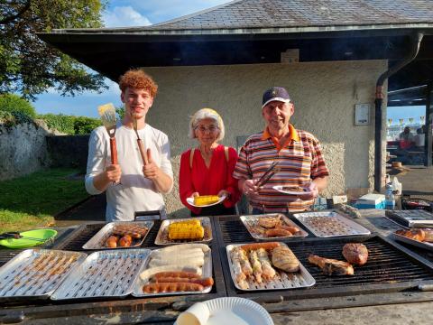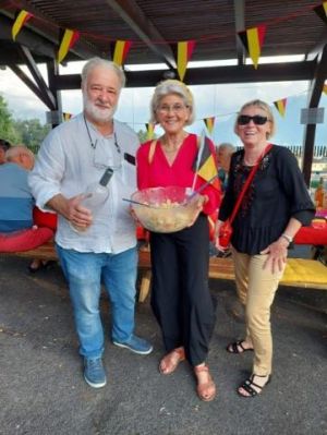 Le 19 juillet 2024, une belle quarantaine de membres de l’Union belge du Valais et de la SRUBL se retrouve à Corsier-sur-Vevey pour fêter notre pays dans la bonne humeur avec une météo fantastique. Pas de drache nationale… Drapeaux des deux Unions, fanions, portrait royal, décoration noir, jaune, rouge jusqu’aux toilettes des dames et la brabançonne trilingue ont créé une ambiance festive autour d’un barbecue arrosé de champagne, bières belges et vins. Tous ont mis la « main à la pâte » en apportant des plats originaux et exquis allant de l’apéro, aux salades et pour finir des desserts gourmands. Une soirée mémorable dont témoigne la galerie de photos.